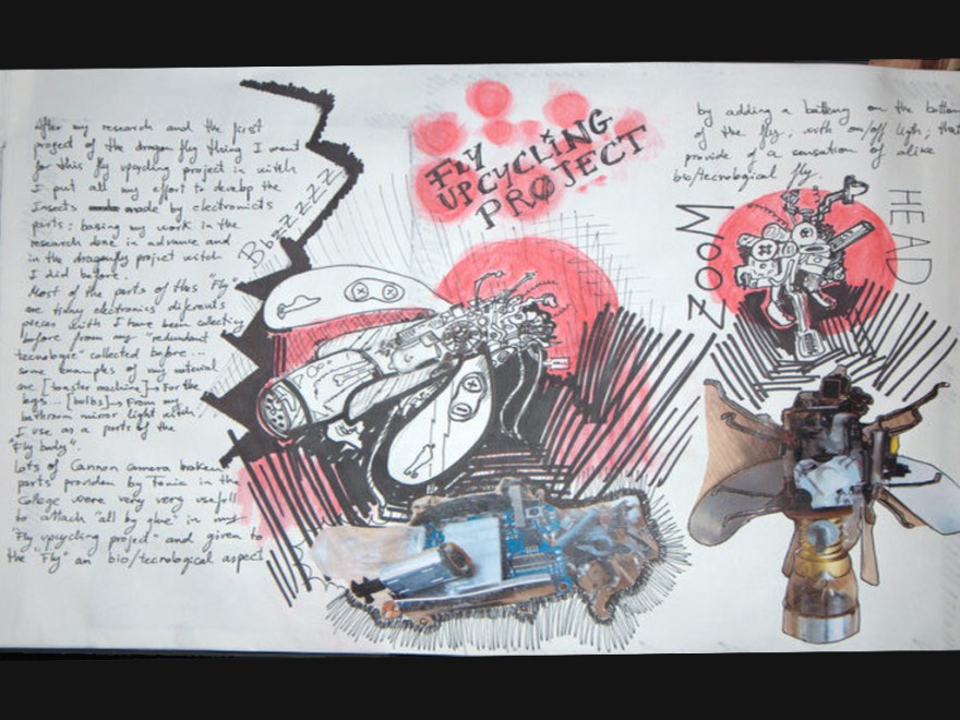 Some examples of my materials are (toaster machine)(bulbs)(cannon camera) to give to the fly an bio/technological aspect.